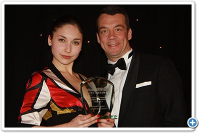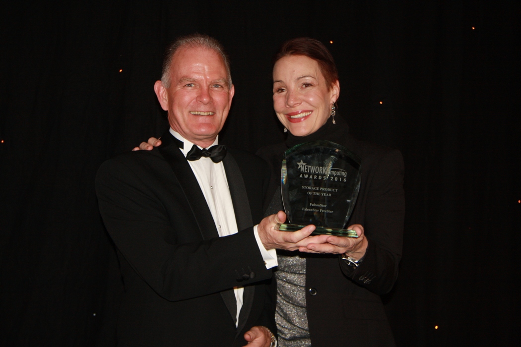 Iris Hatzenbichler & Tony Martin accepting the award on behalf of FalconStor