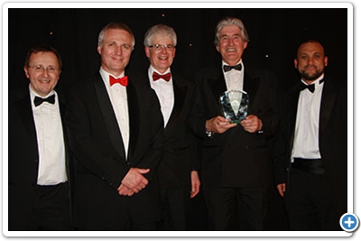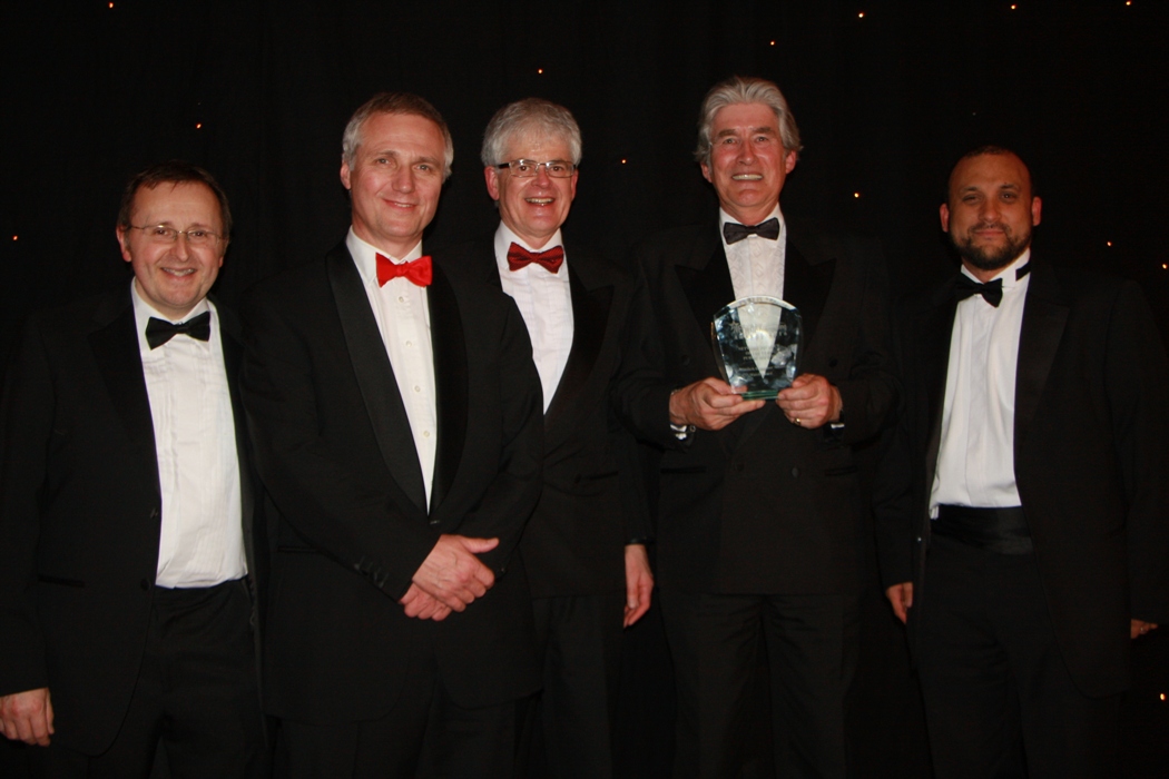 Tim Howlett, John Barron & Trevor Barker & Martin Lethbridge accepting the award on behalf of Portsmouth Grammar School and WatchGuard