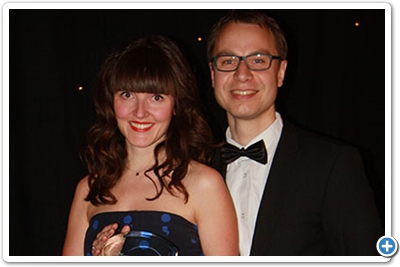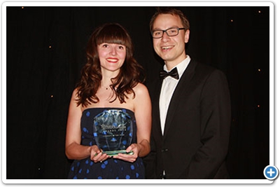 Michael Rojek & Iryna Chekanava accepting the award on behalf of Adrem Software