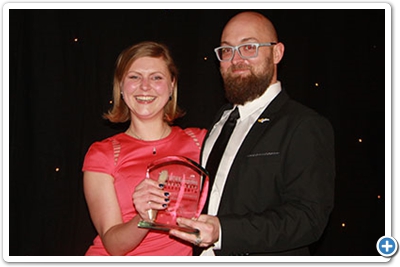 Haley Johnson & Danny Rowark accepting the award on behalf of SUSE